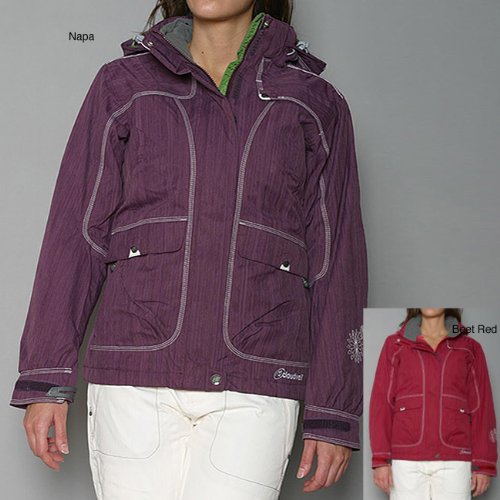 A light durable nylon construction is showcased in this women's jacket from Cloudveil. This jacket also features a removable hood, waterproof shell and a fluffy PrimaLoft insulation. Color options: Beet red, napa One pass, one interior media, one interior mesh and two front pockets Zipper closure Cirrus PinStripe shell Mirage poly, body-mapped fleece lining PrimaLoft Sport insulation 10K w/ DWR waterproof Underarm zips Fully taped seams Powder skirt Removable hood 100-percent nylon Machine washable Model: 6262 All measurements are approximate and may vary by size.